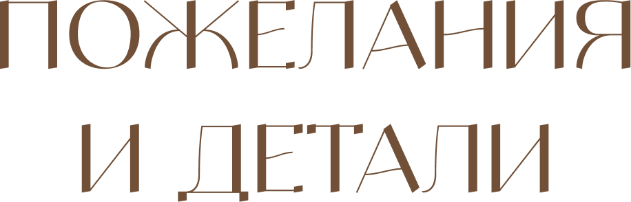 Мы очень хотим сохранить нежную и гармоничную атмосферу нашего дня. Будем рады, если Вы выберите образы в бежевых, нюдовых, спокойных пастельных оттенков. Просим избегать ярких и кричащих цветов.